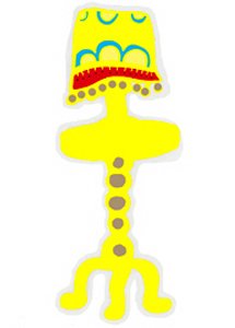 single lampstands in yellow, blue and red