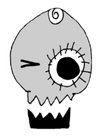 straight skull, winking skull and skull flower