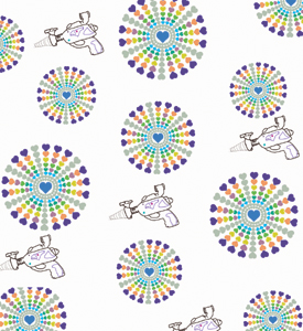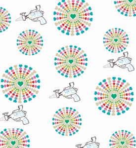 cards, fabric and gift wrap: space guns and hearts